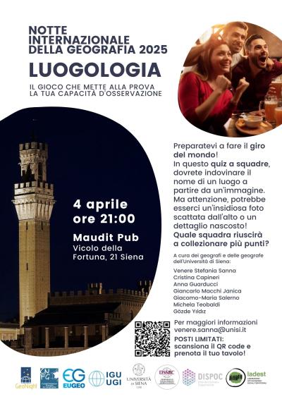 Preparatevi a fare il giro del mondo! In questo quiz a squadre, dovrete indovinare il nome di un luogo a partire da un’immagine. Ma attenzione, potrebbe esserci un’insidiosa foto scattata dall’alto o un dettaglio nascosto! Quale squadra riuscirà a collezionare più punti? A cura dei geografi e delle geografe dell'Università di Siena: